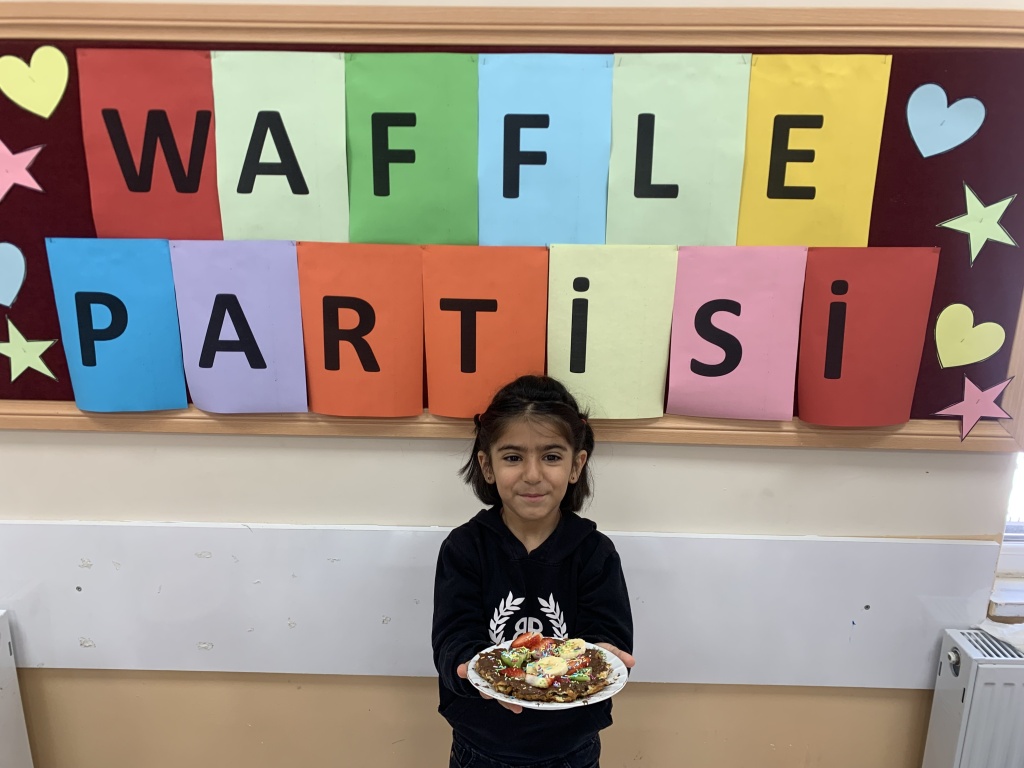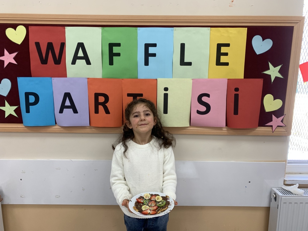 Anasınıfı Öğrencimiz Nehir Çekim'in annesi Yüksel Hanım ile birlikte waffle yaptık.